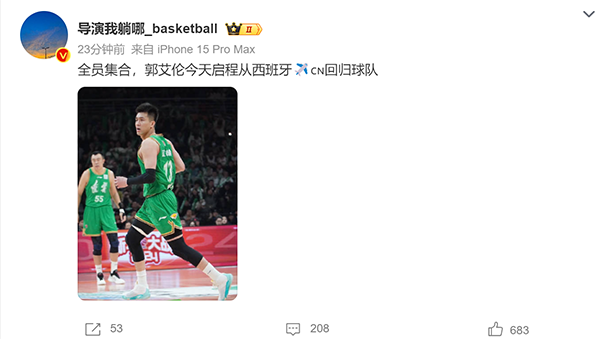 24直播网讯 4月2日,郭艾伦即将回国归队的消息引发很多人的关注,这件事情的起因是知名篮球记者的报道,称全员集合,郭艾伦今天启程从西班牙回国,回归球队。此前郭艾伦在宣传活动的时候,也谈到了自己即将回国的消息。