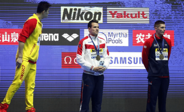 这场比赛汪顺的成绩是1分55秒00第一名,第二名是英国的选手斯科特,他的成绩是1分55秒28。这名选手大家都很熟悉,在前年的世锦赛,他拒绝和夺冠的孙杨握手,并且在赛后大放厥词,公开嘲讽孙杨等等,引发了很大的争议。