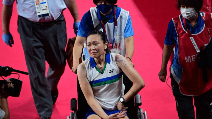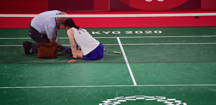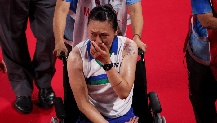 24直播网讯 北京时间7月29日,东京奥运会继续进行,在羽毛球女单比赛中,让人沮丧的消息传出。美国选手张蓓雯遭遇跟腱断裂的重伤,含泪离场,哭成了泪人,情绪崩溃了。
