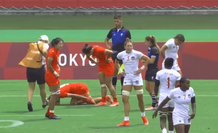上半场的比赛开始后,中国队打出了精彩的配合,率先完成了第一个达阵,这也是中国队在奥运历史上的首个达阵,中国队这边在压迫的时候出现了失误,美国队也完成了一次达阵,比分变成了7:7,两队回到了同一起跑线,上半场的比赛结束中国队7:7美国队,上半场的比赛中国队的整体表现要比美国队好。