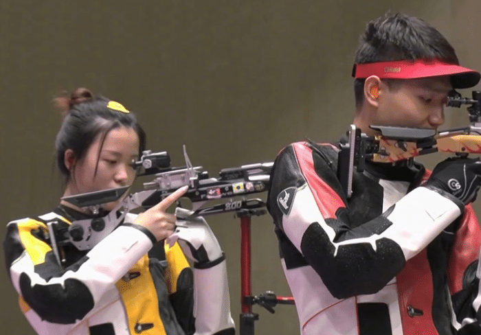 这场比赛,杨倩和杨皓然赢得并不轻松。在中局阶段,两人一度9-11落后。不过随后,两人连得6分,15-11拿到赛点仅差1分就能获得金牌。最终,杨倩和杨皓然也没有给对手机会,最终拿下这枚金牌。获胜一刻,杨倩自己依然非常淡定,反而是教练振臂高呼。