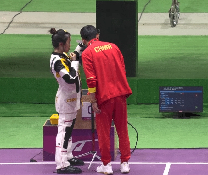 决赛还是抢16的规则,也就是两对组合谁先拿到16分。第一局,中国组合险胜拿到2分,第二局,美国组合更胜一筹。第三局,中国组合打出20.9环的好成绩,拿到2分,4比2领先。紧接着第四局的比赛,两对组合打成了平局,按照规则,各自拿到1分,中国还是5比3领先。
