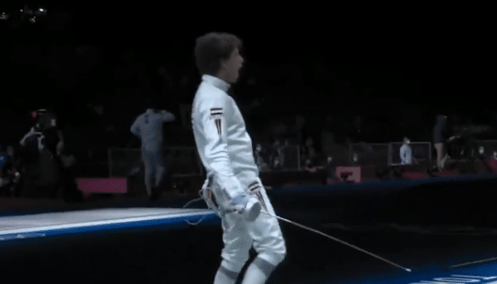 而在男子个人重剑比赛,当18岁的埃及击剑选手Elsayed击败对手,成功赢得比赛胜利的时候,兴奋的他跑到场边庆祝胜利,摘下面罩大胜吼叫庆祝,同时还做出了C罗的经典庆祝动作“siuuuuuu”,用这样的方式庆祝自己成功晋级。