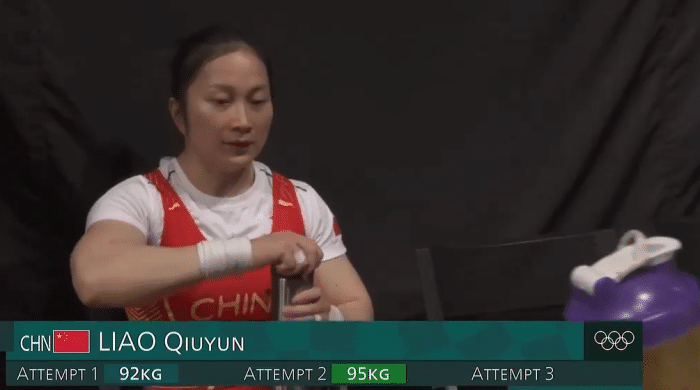 值得一提的是,廖秋云举起95公斤之后,教练为她送上保温杯;此前侯志慧夺金之后,她在比赛期间用保温杯引热议,被称为来自东方的神秘力量。