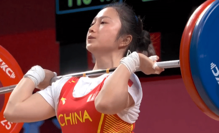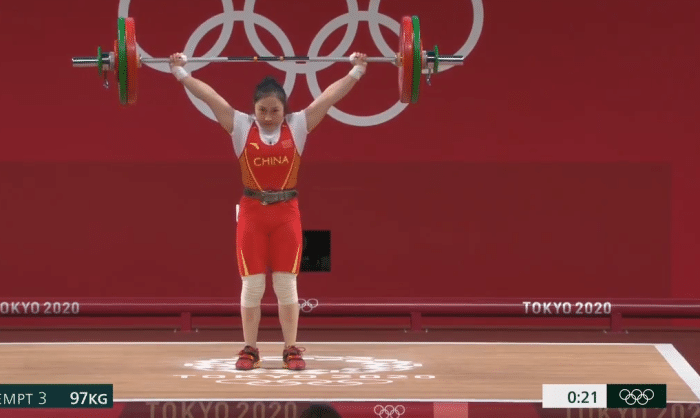 在抓举项目中,廖秋云的表现十分稳定,开把92公斤稳稳举起,第二把试举95公斤也是成功举起,第三把试举97公斤,依旧是稳稳举起;最终廖秋云抓举成绩定格在97公斤,排在第三位,仅仅比第一名的纳比耶娃1公斤。