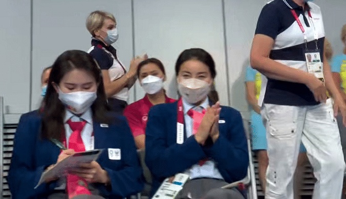 这场比赛镜头也给到了场边的陈若琳和郭晶晶,两人的任务是给裁判打分。当陈艾森和曹缘跳完之后,郭晶晶也送上掌声。虽然工作是给裁判打分,评估裁判工作是否称职,是否执裁公平,国际游泳联合会跳水技术委员会(DTC)成员,但看到我们自己的跳水运动员,郭晶晶还是非常支持的。可惜的是中国队还是遗憾的丢掉金牌,获得银牌。