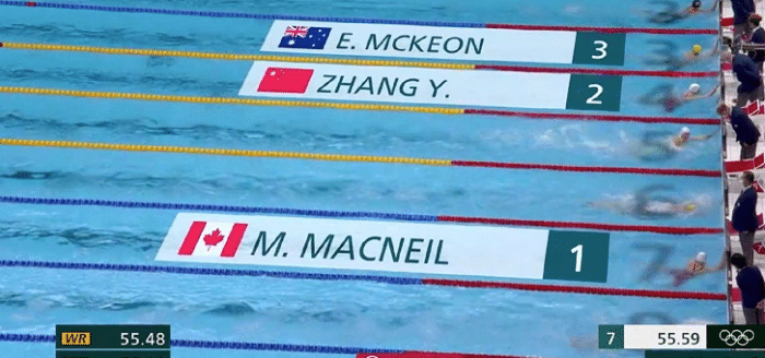 参加比赛之后,00后的麦克尼尔在18岁的时候参加韩国举办的世界游泳锦标赛,麦克尼尔在女子100米蝶泳中,以55.83秒的成绩成功夺冠。麦克尼尔也一举成为世界百米蝶泳史上第3位打破56秒大关的女子选手,同时也是加拿大史上第二位赢得国际游泳比赛金牌的选手。4x100米自由泳接力比赛中,麦克尼尔和队友还斩获了一枚铜牌,表现相当出色。
