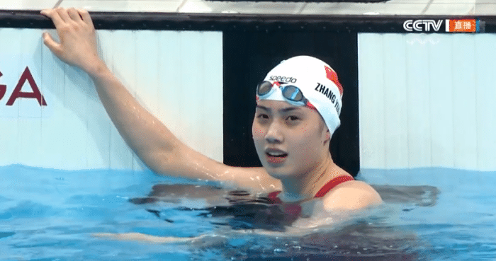 张雨霏在预赛、半决赛和决赛都游进56秒以内,本届奥运会唯一一位在该项目中连续三场游进56秒以内的选手;决赛游出55秒64的好成绩,比第一名55秒59仅仅只差0.05秒。