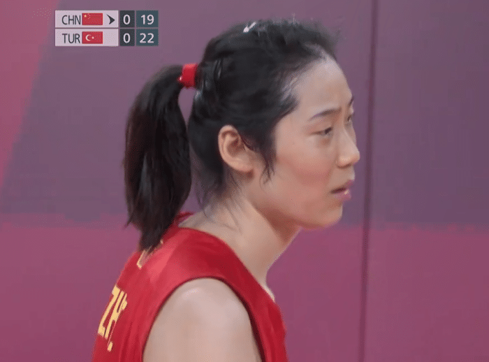 土耳其女排再次强攻得分,她们取得19比12的领先,中国女排刘晏含和朱婷追了2分,土耳其选择叫暂停。暂停后,土耳其再次出现失误,刘晏含的进攻也打成,张常宁吊球打成,追到17比21只差4分。土耳其再次进攻不进,张常宁再次吊球得分,土耳其得分后,朱婷再次得分,但土耳其又连续得分,24比19拿到局点,中国女排追了2分,21比25输掉这一局,0比1落后。