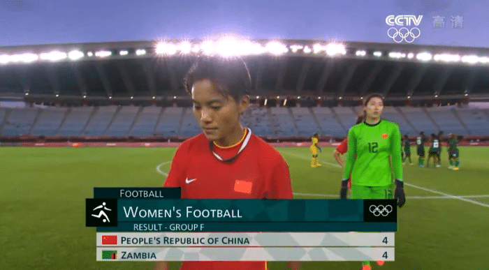 24直播网讯 北京时间7月24日,中国女足在3-1领先的情况下,被赞比亚追平比分,最终4-4战平赞比亚,中国女足头牌王霜一个人独进4球扛着中国女足仍不赢,两战狂丢9球,1负1平两场不赢,小组出线希望渺茫;赛后王霜一脸无奈和落寞,独造4球仍难求一胜。