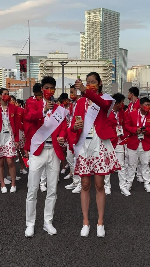本届东京奥运会,中国代表团一共派出了431名运动员参加东京奥运会。其中男子旗手为跆拳道选手赵帅,女子旗手则由中国女排现任队长朱婷担任,两人模拟举旗的照片也被曝光。而中国代表团的入场服也随之提前揭晓,女运动员身穿红色西装搭配白色裙子,裙子上还有红色花纹。男运动员是红色西装,白色衬衫和白色裤子,衬衫上有红色星星元素,看起来非常养眼。