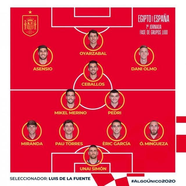 24直播网讯 今天下午15:30,奥运男足小组赛首轮,西班牙国奥vs埃及国奥首发公布。