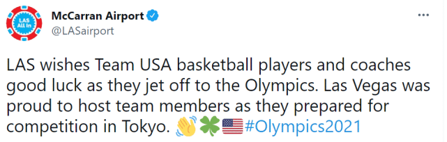 24直播网讯 北京时间7月20日,美国男篮飞抵东京国际机场。他们乘坐的5Y8555号航班,原定在拉斯维加斯当地时间下午13点起飞,但因故延误了3小时18分钟,直到16点18分才起飞。他们起飞时,拉斯维加斯机场还发文祝福美国男篮的球员和教练在东京好运。经过10小时24分钟的飞行,美国男篮在当地时间晚18点42分抵达东京。