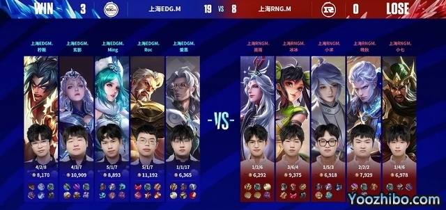 恭喜上海EDG.M以3-0的战绩轻松击败了上海RNG.M赢下了比赛胜利,拿到了KPL春季赛首胜