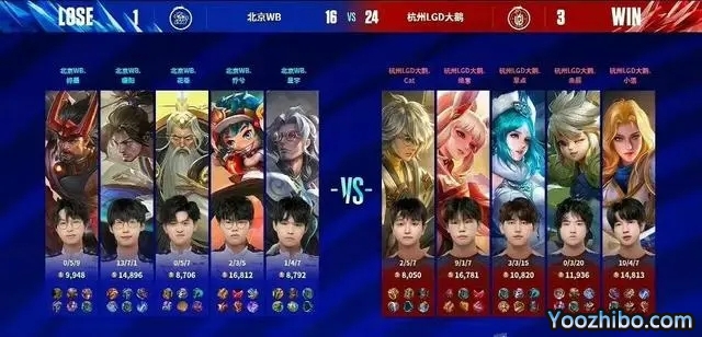 24直播网讯 北京时间02月25日,在第三场比赛中,北京WB以1-3的比分爆冷不敌杭州LGD大鹅,成为本赛季星狼狮猴第一个倒下的四大天王,本以为上一场武汉eStar已经够小丑了,没想到北京WB打的更加丑陋,五个位置基本上都被杭州LGD大鹅对位碾压,其中对抗路和发育路最为严重,打野位暖阳发挥稍微好一点。不过最后一局北京WB暖阳的宫本武藏老是顶着张良切,也属实是迷惑操作。