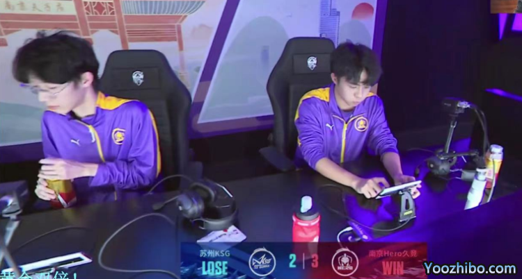 首局比赛一上来,久哲就给铃铛选出了绝活英雄百里守约,铃铛之所以被大家熟知就是因为这个英雄,他的守约命中率确实很夸张,小玖在对线的时候非常难受。另外hero的蒙恬加桑启组合在正面也给了KSG很大的压力,hero拿下首局。