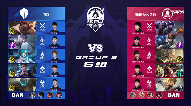 2分16秒,南京Hero拿下暴君。4分40秒,下路团,双方2换2,马可波罗拿下双杀。5分10秒,南京Hero破掉TES下一塔。7分07秒,南京Hero破掉TES中一塔。7分44秒,中路团,南京Hero击杀马可波罗。8分11秒,南京Hero破掉TES下二塔。9分48秒,TES拿下先知主宰。10分47秒,TES抢下暗影暴君,随后团战TES打出1换4,不知火舞与马可波罗拿下双杀。11分27秒,TES下路击杀墨子团灭对手,随后破掉南京Hero中路高地。12分28秒,TES不知火舞击杀澜,随后控下暗影主宰。15分09秒,TES拿下暗影暴君。16分12秒,TES破掉南京Hero上高地。16分35秒,南京Hero击杀盘古。17分20秒,南京Hero墨子击杀不知火舞。17分50秒,南京Hero拿下暗影主宰。19分27秒,南京Hero澜击杀太乙真人。19分58秒,TES中路反打打出1换4。20分35秒,TES破掉南京Hero水晶拿下胜利。