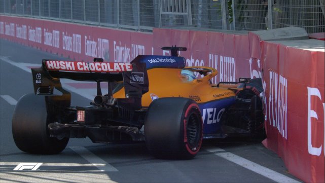 比赛临近结束时,迈凯伦的里卡多撞墙,红旗,比赛提前结束。