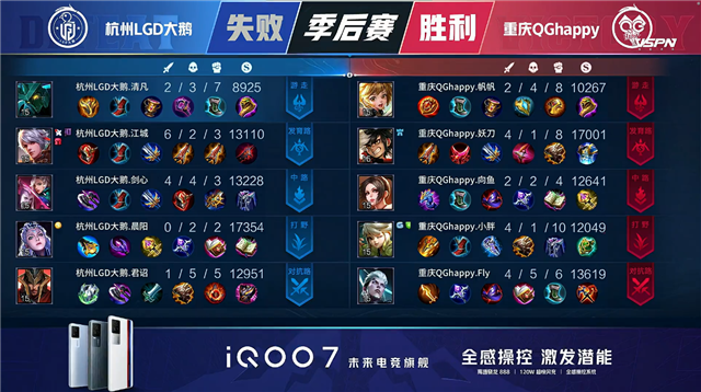 24直播网讯 6月3日2021KPL春季赛季后赛败者组第一轮第一场,由重庆QGhappy对阵杭州LGD大鹅,以下是本场比赛快讯。