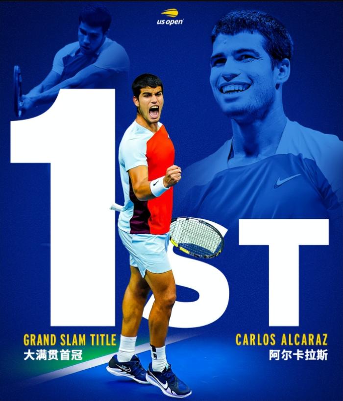 第一,阿尔卡拉斯生涯第一次拿下大满贯冠军,开创个人历史。