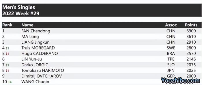 24直播网讯 北京时间2022年7月19日,随着2022年WTT球星挑战赛布达佩斯站比赛的落幕,国际乒联也公布了今年第29周的最新排名。