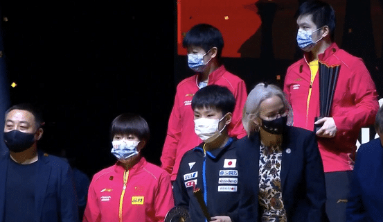 然后是冠军的合影,樊振东和孙颖莎合影,两人都是本届赛事的大赢家,恭喜。