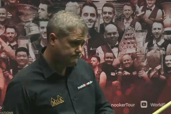 决胜局,梁文博单杆21分,红球不进;米尔金斯单杆74分超10分;梁文博继续努力,梁文博打进一颗红球,黑球不进认输