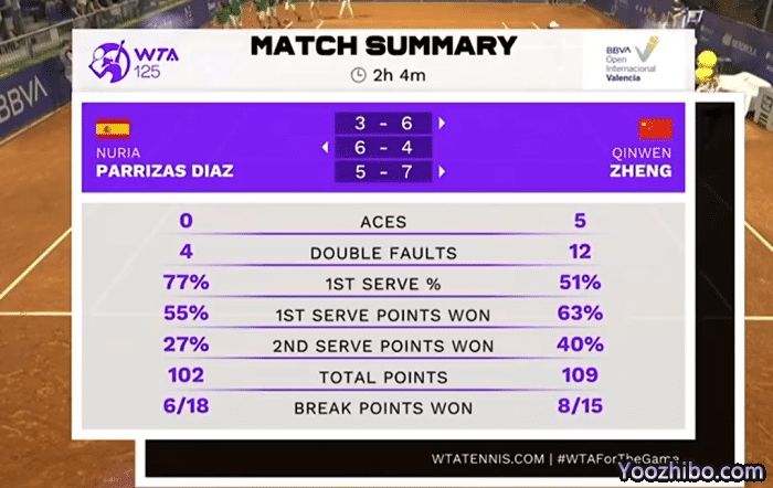 决胜盘,两人首局展开鏖战,在经历8次平分后,郑钦文终于艰难保发。两人随后互破发球局,比分来到2-2平。第5局,郑钦文挽救破发点保发。第6局,帕里萨斯出现波动,连丢4局交出发球局。郑钦文把握优势,7-5拿下决胜盘,2-1击败对手晋级决赛。