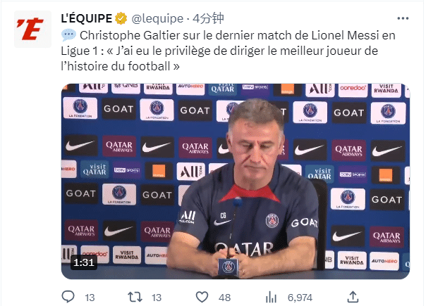 加尔蒂确认:末轮是梅西在巴黎的最后1战!我有幸执教过世界最佳