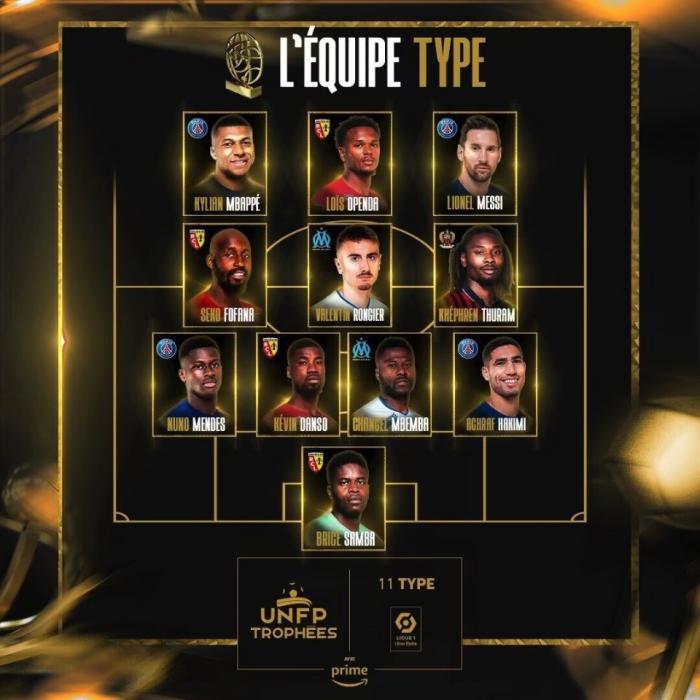 除了梅西和姆巴佩之外,大巴黎另外两位入围赛季最佳阵的是左后卫努诺-门德斯和右后卫阿什拉夫。这4人都是大巴黎夺得法甲第11冠的重要功臣。