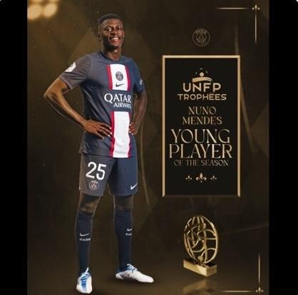 赛季最佳新人:努诺-门德(巴黎圣日耳曼)