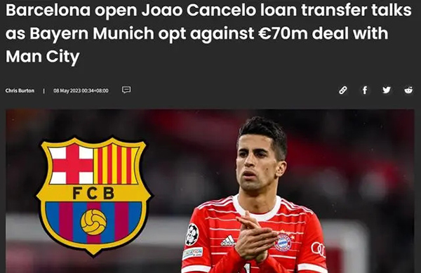 24直播网05月08日据西班牙媒体《体育报》报道,巴塞罗那已经与若昂-坎塞洛的经纪人就这位曼城后卫租借交易展开了谈判。有可能达成一项对巴萨在经济上有吸引力的交易。