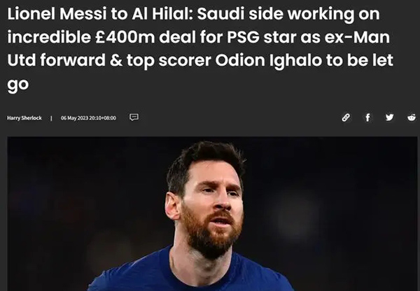 据天空体育报道,签下这位阿根廷人将意味着前曼联前锋伊哈洛在合同到期后离开。目前梅西已经得到了一份口头报价,他在巴黎圣日耳曼的合同也将于今年夏天到期,整个报价将超过4亿英镑(5.05亿美元)。