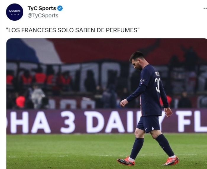 看到自家球王被三停重罚,不仅是《奥莱报》,另外一家阿根廷媒体TyC也十分气愤,他们在官方账号发了一张梅西的照片,并配文:“法国人只懂香水。”来为梅西鸣不平。显然在阿媒看来,“三停”梅西只是法国人再次为世界杯丢冠,展开报复的一个秀下限的操作罢了。