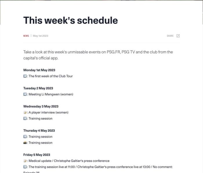 不仅是《奥莱报》,就连球迷也晒出了晒出了巴黎官网的截图,并表示:“他们昨天在网站上发布了这个。星期一没有训练课程。”这一铁证也表明,梅西被“三停”处罚实在太冤枉了。大巴黎高层此举似乎也宣告了俱乐部基本不会再与梅西谈续约,双方也公开撕破脸。