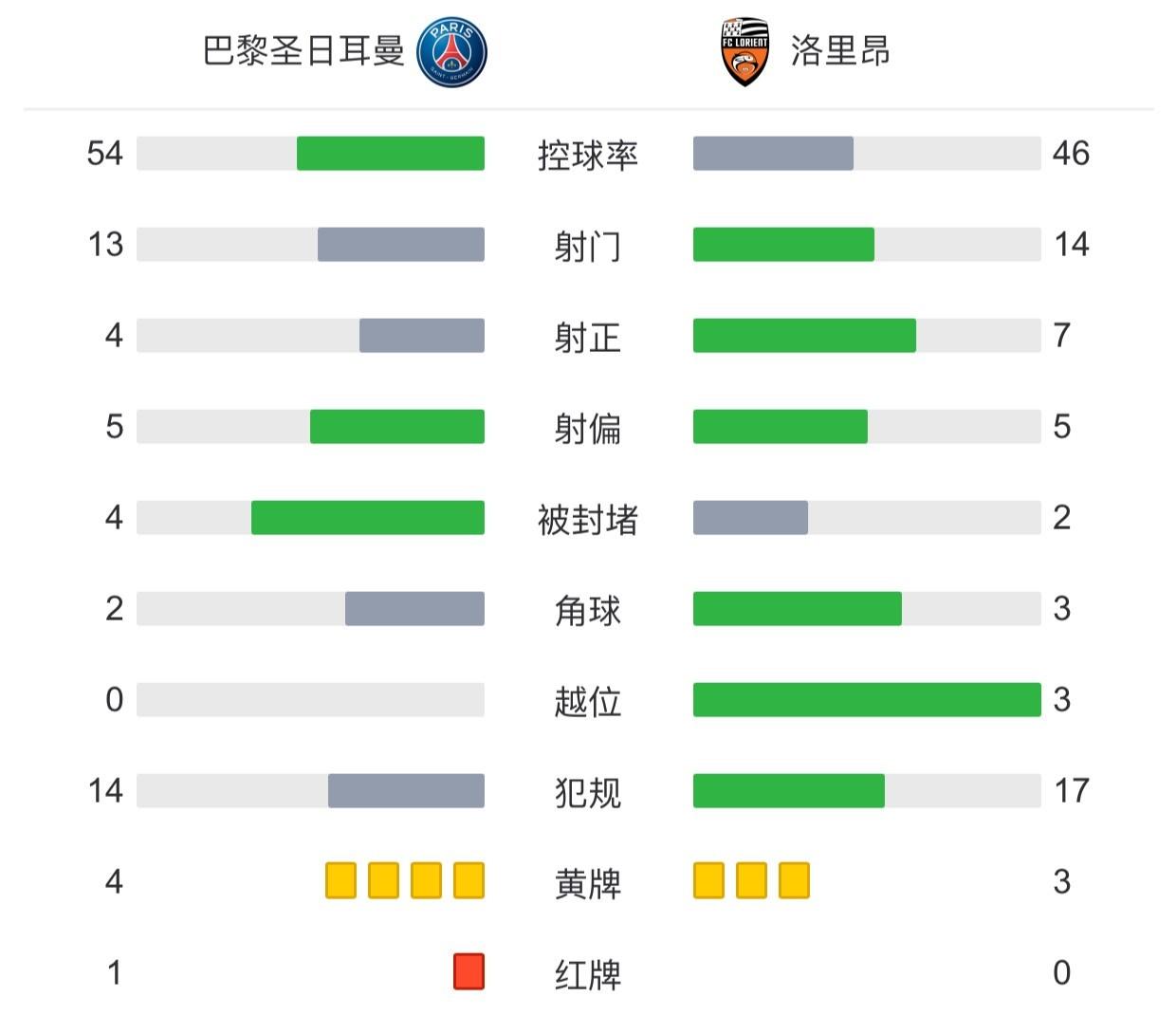 最终,巴黎主场1-3不敌洛里昂,先赛的情况下以8分优势领先马赛。