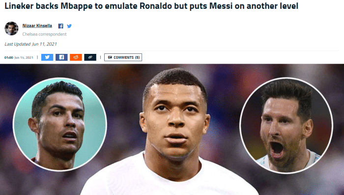 24直播网讯英格兰传奇球星莱因克尔最近接受了进球网采访,他表示姆巴佩未来能接班C罗,但无法接班梅西,因为梅西太强了。