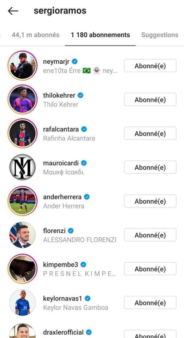 24直播网讯 北京时间5月9日,皇马队长拉莫斯在Instagram上关注多名巴黎球员,其中包括内马尔,拉菲尼亚,埃雷拉,伊卡尔迪,弗洛伦齐,金彭贝等人。