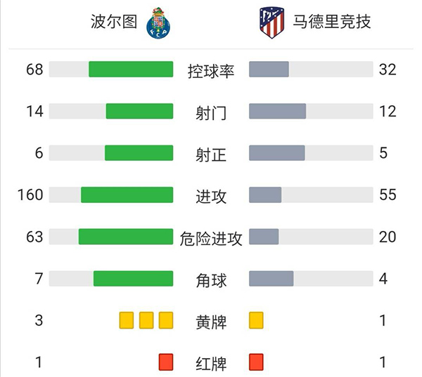 24直播网讯:北京时间12月8日04:00,欧冠小组赛B组第6轮迎来一场出线关键战,马德里竞技客场挑战波尔图。上半场,苏亚雷斯开场伤退,格列兹曼失良机,奥布拉克屡次救险。下半场,格列兹曼传射建功,卡拉斯科、温德尔与波尔图替补门将马尔凯辛先后在冲突中染红,安赫尔-科雷亚与德保罗终场前接连破门杀死悬念,塞尔吉奥-奥利韦拉点射扳回一城。最终,马竞客场3-1击败波尔图,晋级欧冠16强;后者则进入欧联杯淘汰赛附加赛。