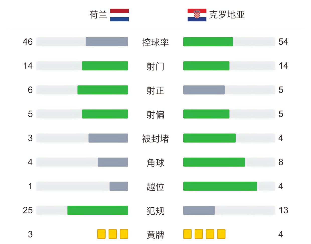 全场比赛结束,最终克罗地亚4-2荷兰。