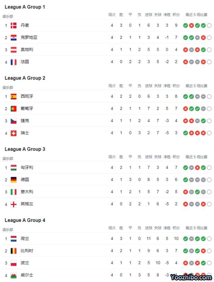 本届欧国联冷门频发,传统强队似乎都出工不出力,球员们的心都已经飞去度假,法国在A组爆冷输克罗地亚4轮2分小组垫底,英格兰主场0-4惨败匈牙利4轮2分小组垫底,与英格兰同组的意大利则在今天凌晨2-5惨败德国,和德国一样4轮积5分,匈牙利高居榜首。