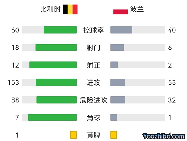全场比赛结束,比利时6-1波兰。