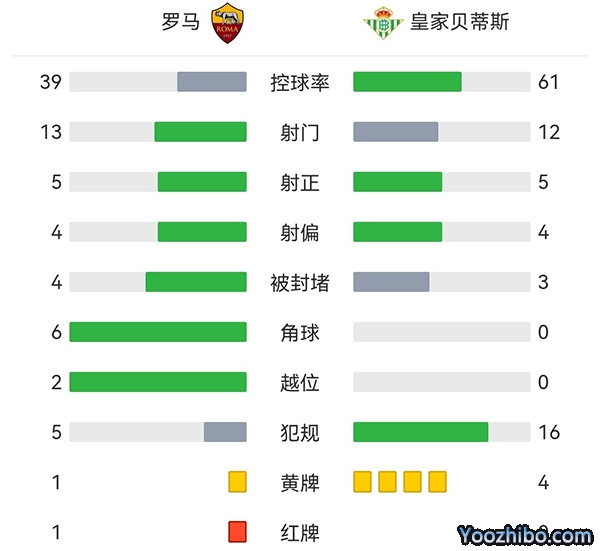 全场比赛结束,罗马1-2不敌皇家贝蒂斯。