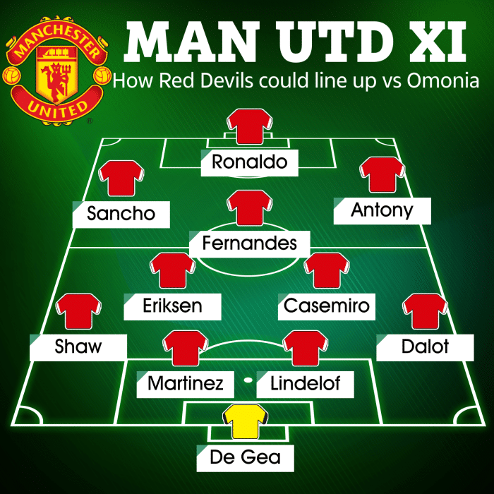 英国《太阳报》预测,滕哈格可能派出的阵容是:德赫亚/迪奥古·达洛,林德勒夫,马丁内斯,卢克·肖/卡塞米罗,埃里克森,B费/安东尼,C罗,桑乔。