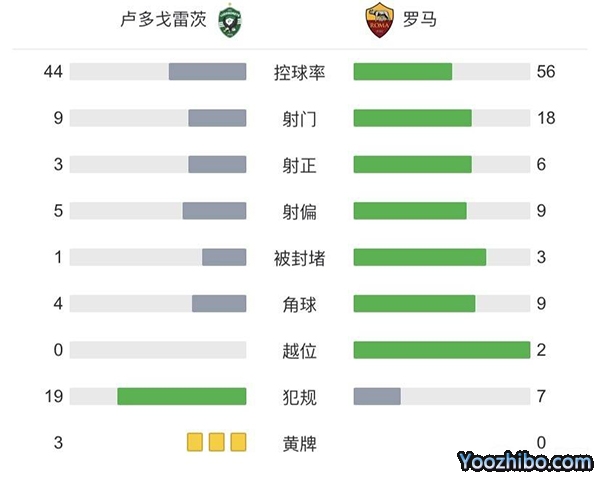 全场比赛结束,罗马1-2卢多戈雷茨。