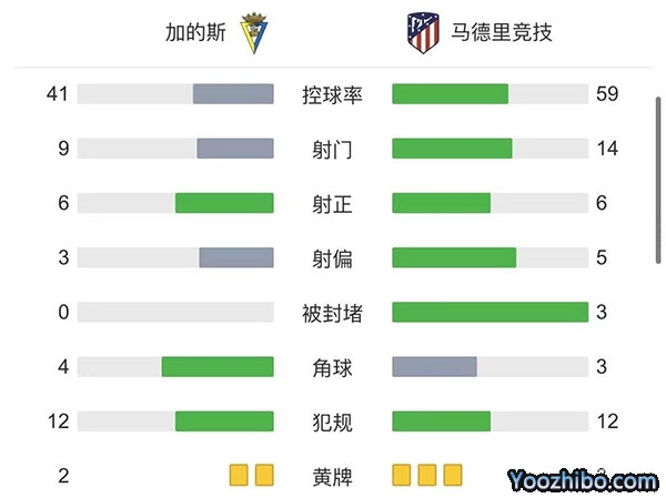 全场比赛结束,马竞客场2-3遭到加的斯绝杀。