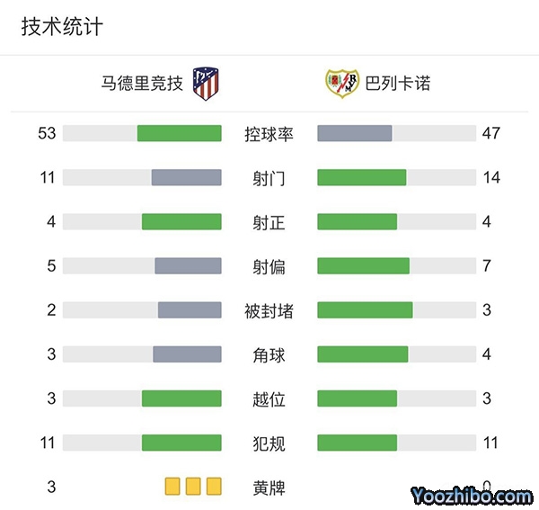 全场结束,马德里竞技1-1巴列卡诺。
