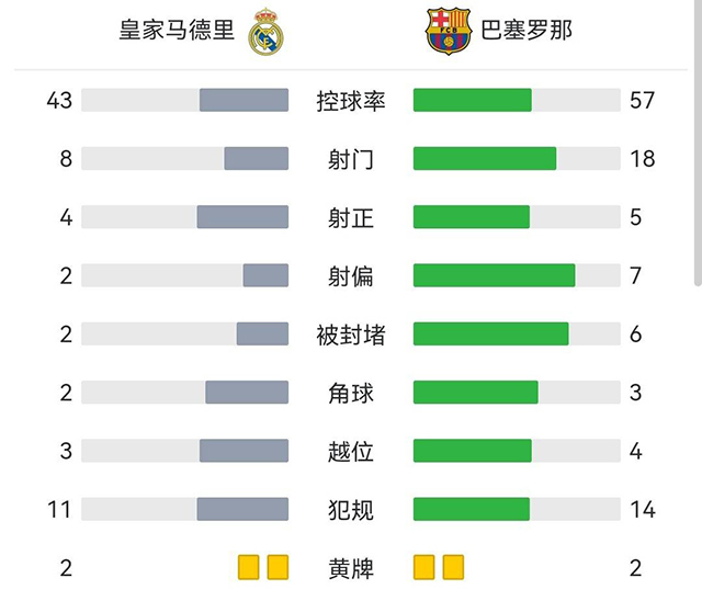 全场比赛结束,皇家马德里3-1巴萨罗那。