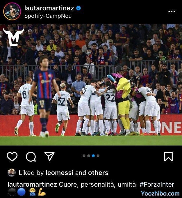 劳塔罗本场比赛打进一球,赛后他发文庆祝球队在诺坎普获得一场平局,这条动态得到了梅西的点赞。