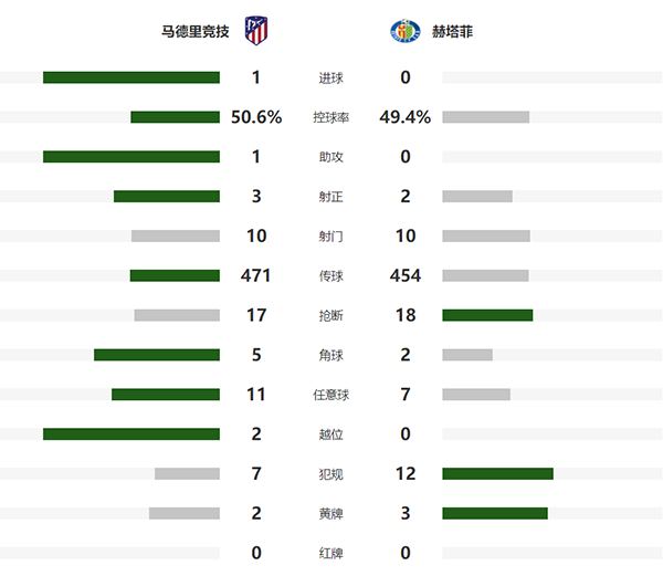 查看:马德里竞技vs赫塔费 全场录像技术统计: